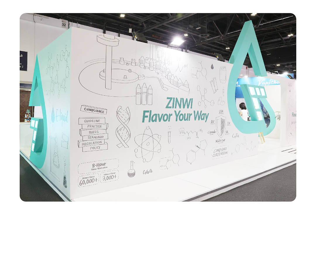 The global e-cigarette industry is turning its attention to Dubai! From June 18 to 20, Zinwi took part in the 2025 THE WORLD VAPE SHOW DUBAI, centering on its own 「SAME FLAVOR」 concept and bringing 8 featured flavor series. Through the "Physical Display of Flavor Sources" model, Zinwi intuitively compared flavor sources with finished e-liquid products, and presented a "trinity" multi-sensory experience that integrates vision, smell and taste.